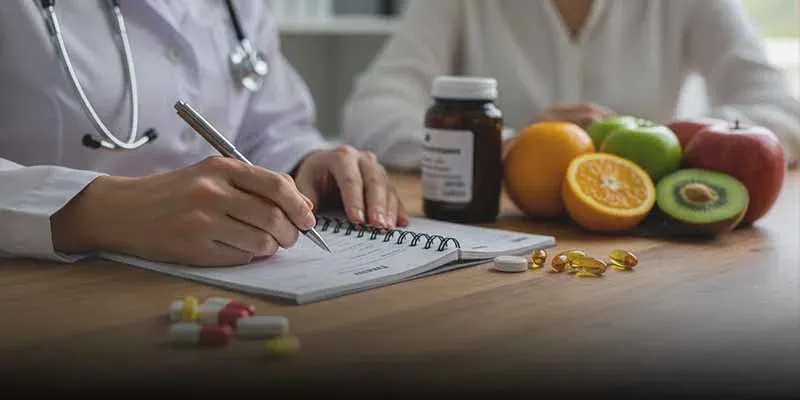 Восполнение этих веществ — не просто медикаментозная задача. Диетолог подбирает продукты, богатые магнием (тыквенные семечки, шпинат, бананы, орехи), цинком (морепродукты, мясо, бобовые), фолиевой кислотой (зелёные листовые овощи, брокколи, цитрусовые, цельнозерновые продукты), а при необходимости назначает биодобавки под контролем врача.